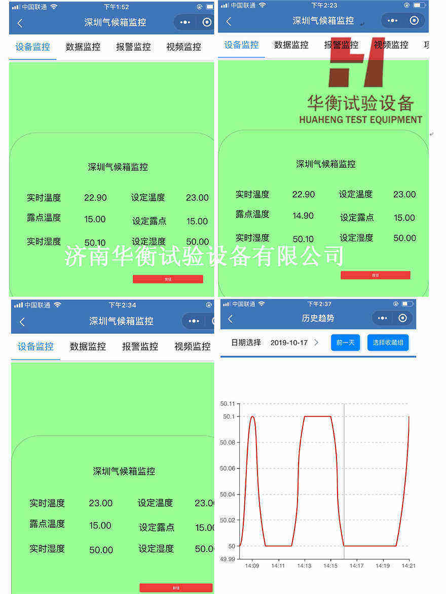 華衡試驗設備針對預處理時間較長的情況,研制了甲醛預處理艙遠程監控智能系統,本系統可以實時監控甲醛預處理艙運行狀態,可以對甲醛預處理環境艙進行實時操作,實現了如同站在甲醛預處理艙旁邊一樣,節省了大量的時間,從手機上就可以進行操作。